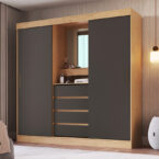 Este clóset de la marca Vekka, modelo Argo, es ideal para quienes buscan un mueble de estilo rústico/campestre con gran capacidad de almacenamiento. Con 5 cajones y 2 puertas corredizas, podrás organizar tu ropa y accesorios de manera práctica y funcional. Además, cuenta con correderas telescópicas para un fácil acceso a tus pertenencias.