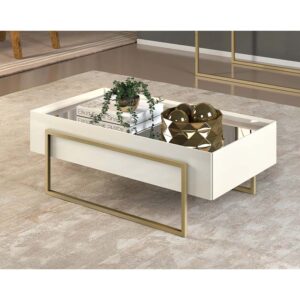 Aparador Charlotte fabricada en aglomerado MDF con terminación en pintura UV color beige con 4 patas de metal color negro. Destaca su diseño de dos bases covaladas, ideal para completar los espacios del hogar.