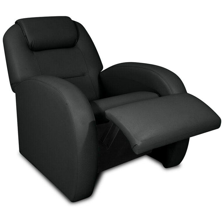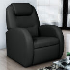 Berger reclinable de estructura de madera acolchada de espuma y tapizado de eco-cuero negro. Gracias a su diseño cómodo y versátil se integrará perfecto a tu living o a cualquier espacio de tu hogar.