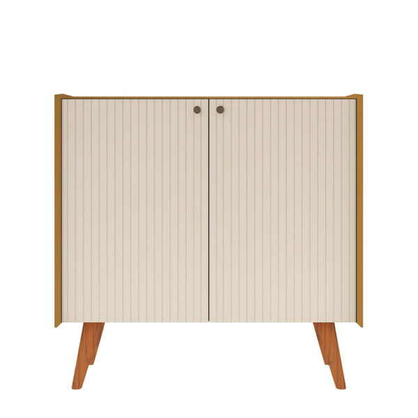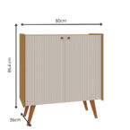 Fabricado en MDF/MDP, el mueble ofrece firmeza y durabilidad para el uso cotidiano. Sus patas elevadas aportan estabilidad y facilitan la limpieza del piso.