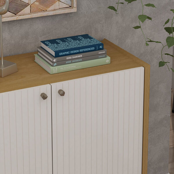 Gracias a su formato compacto y vertical, este buffet permite optimizar el espacio sin sobrecargar visualmente el ambiente.