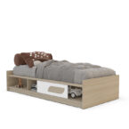 Cama Fox de 1 plaza fabricado con aglomerado MDP color café con 1 cajón color blanco y 2 compartimientos. Ideal para optimizar espacio en hogares reducidos.