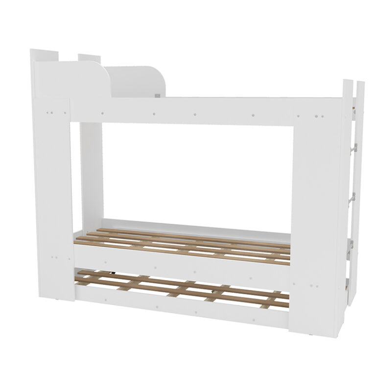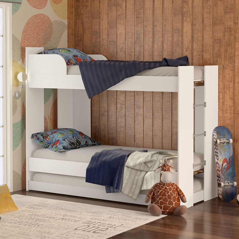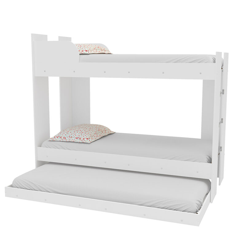 Camarote Triple Londres de 1 plaza fabricado con aglomerado MDP color blanco. Incluye cama auxiliar. Ideal para optimizar espacio en hogares reducidos o en habitaciones compartidas.