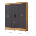 Con una altura de 181 cm, este clóset ofrece amplio espacio para colgar tus prendas en sus 6 puertas con barrales incluidos. Además, cuenta con 2 cajones espaciosos para guardar tus objetos más pequeños y mantener todo en orden.