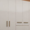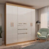 El Closet Berna Blanco 7 Puertas 2 Cajones es una excelente alternativa para quienes necesitan amplio espacio de almacenamiento sin sacrificar diseño. Su acabado blanco con detalles en tono madera aporta luminosidad y modernidad al dormitorio, creando un ambiente limpio y ordenado.