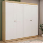 El Closet Europa Beige 4 Puertas ofrece amplio espacio de almacenamiento en un diseño moderno y elegante. Ideal para organizar ropa, accesorios y prendas largas en dormitorios contemporáneos.