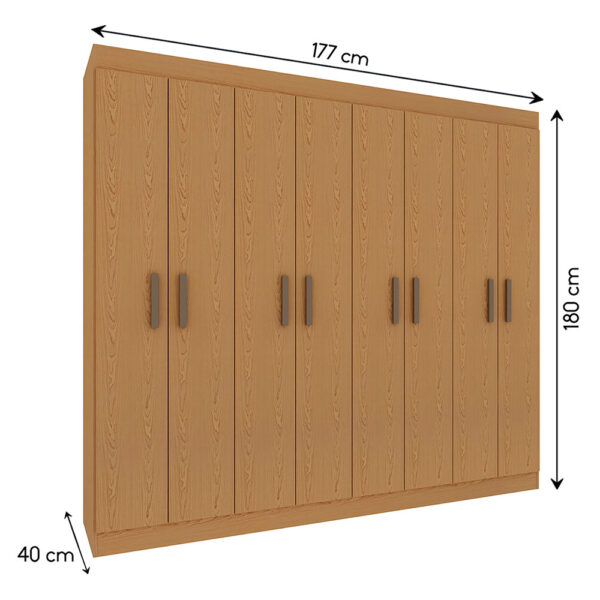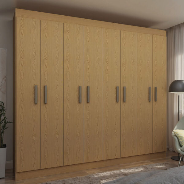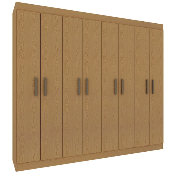 El Closet Magnus 8 Puertas Café Claro es perfecto para familias o parejas que requieren gran capacidad de almacenamiento sin perder estética.