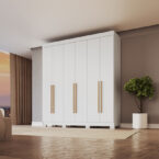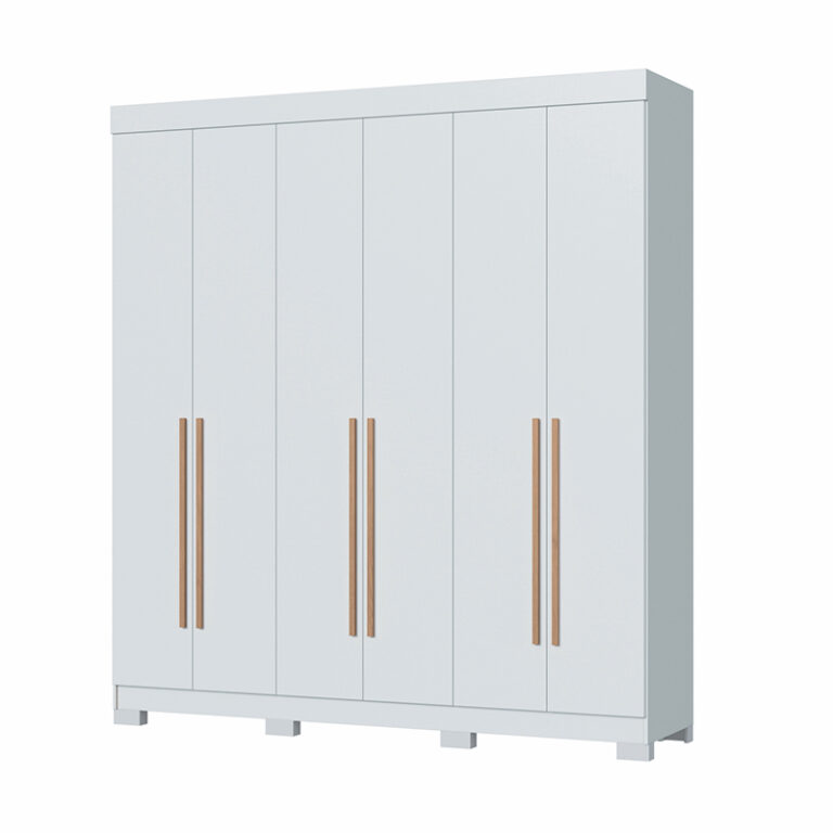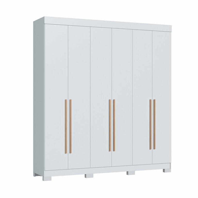 Closet Opus de 6 puertas, con 11 compartimientos en total, estructura en MDP, cubierta en Pintura UV y manillas de madera. Ahora tendrÔs espacio de sobra para organizar como tu desees y darle un toque diferente a tu habitación.