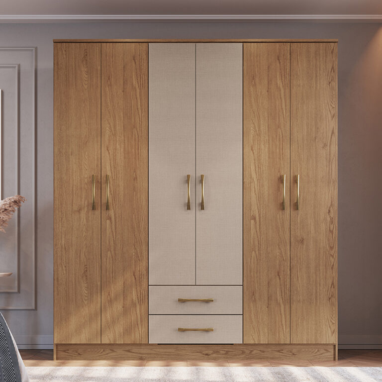 Este clóset de la marca VEKKA, modelo Pequim, es ideal para organizar tu ropa y accesorios de manera eficiente. Con 6 puertas batientes y 2 cajones con correderas telescópicas, tendrás fácil acceso a tus pertenencias. Su estructura de MDP en estilo clásico garantiza durabilidad y resistencia.