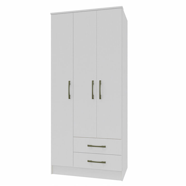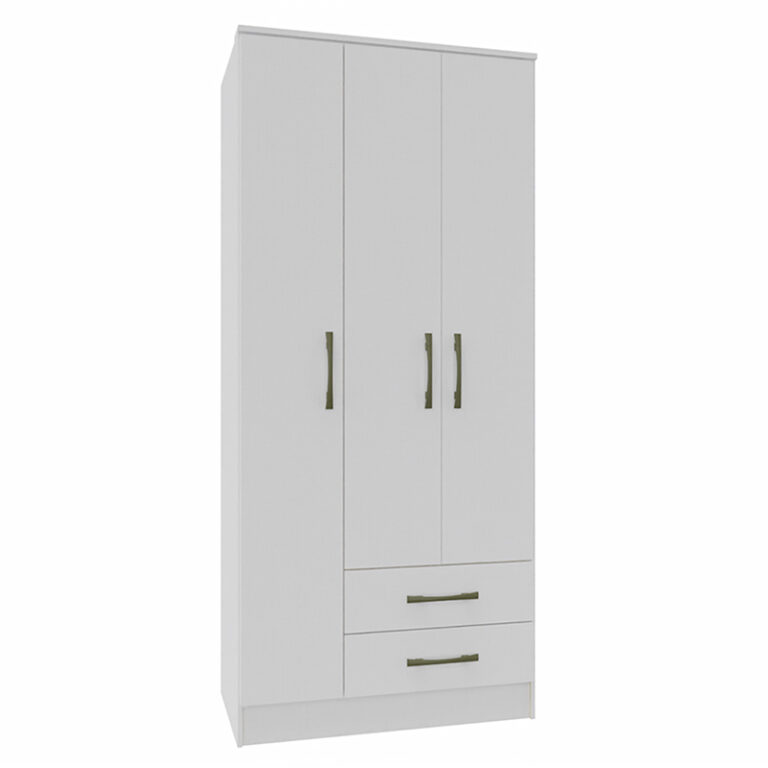 El clóset Pequim es un elegante y funcional mueble de tres puertas y dos cajones que combina a la perfección estilo y organización. Su diseño contemporáneo se adapta a cualquier decoración de interiores, aportando un toque de sofisticación a tu espacio. Las tres puertas ofrecen un amplio espacio para colgar y organizar tu ropa, mientras que los dos cajones inferiores proporcionan espacio adicional para guardar objetos pequeños. Con su acabado de alta calidad y sus tiradores modernos, el clóset Pequim es una elección ideal para mantener tus prendas y accesorios ordenados, y a la moda.