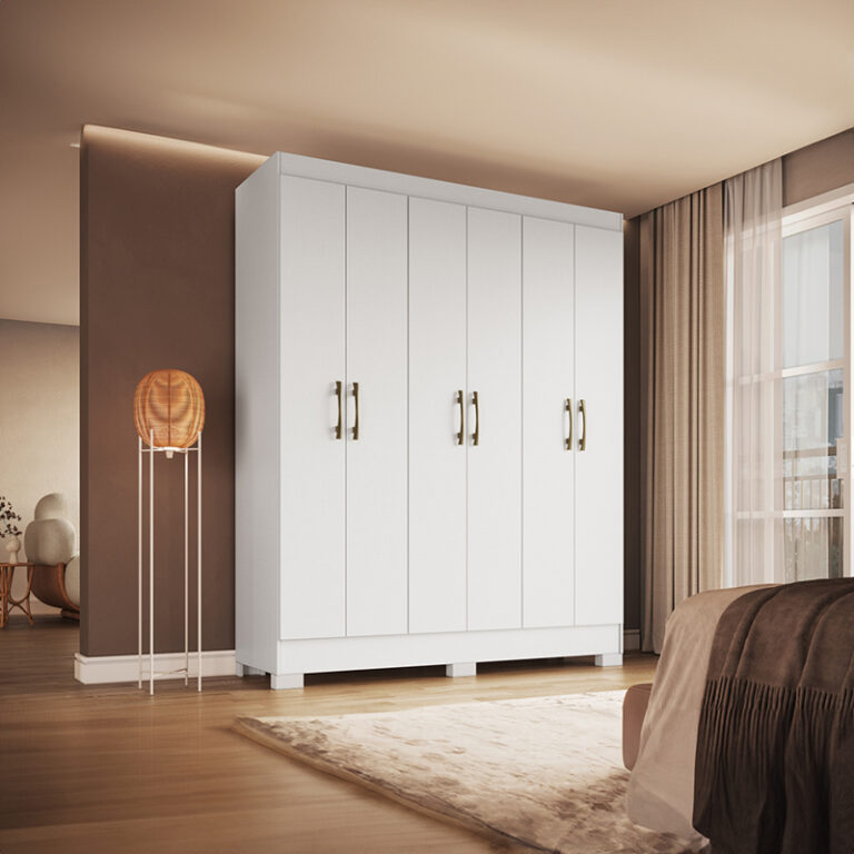 El Closet Roma Grey 6p Vekka es la solución perfecta para organizar tu ropa y accesorios de manera eficiente. Con una altura de 182 cm y un ancho de 147 cm, ofrece un amplio espacio de almacenamiento. Cuenta con 6 puertas, 1 cajón, 4 estantes y espacio para calzado, todo en un estilo clásico y elegante. Además, su estructura de MDP garantiza resistencia y durabilidad.