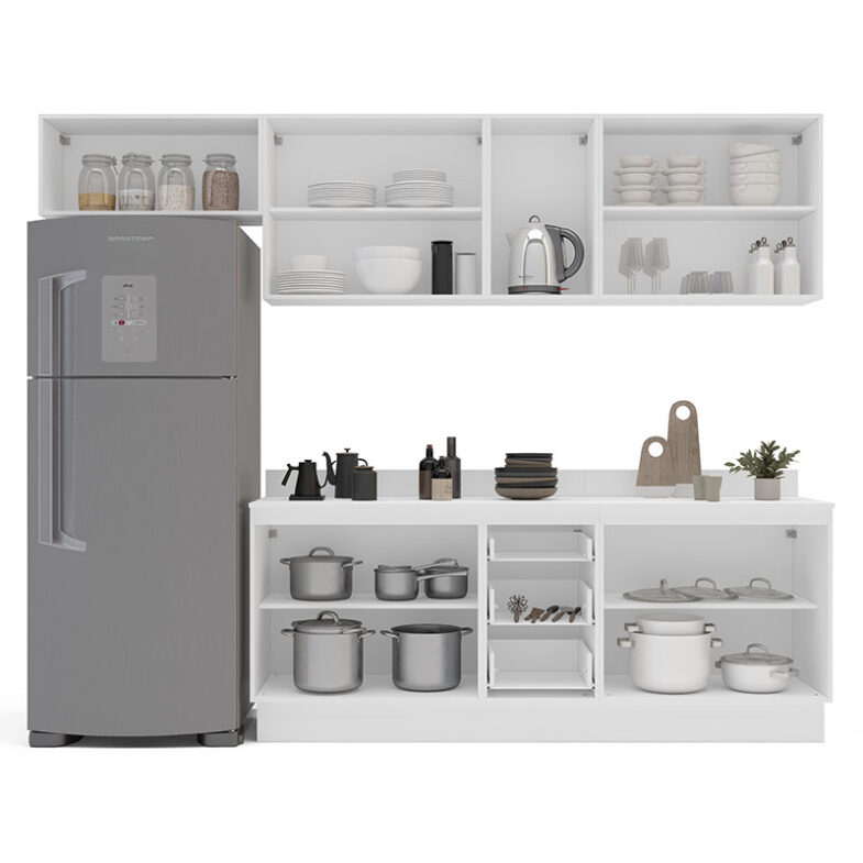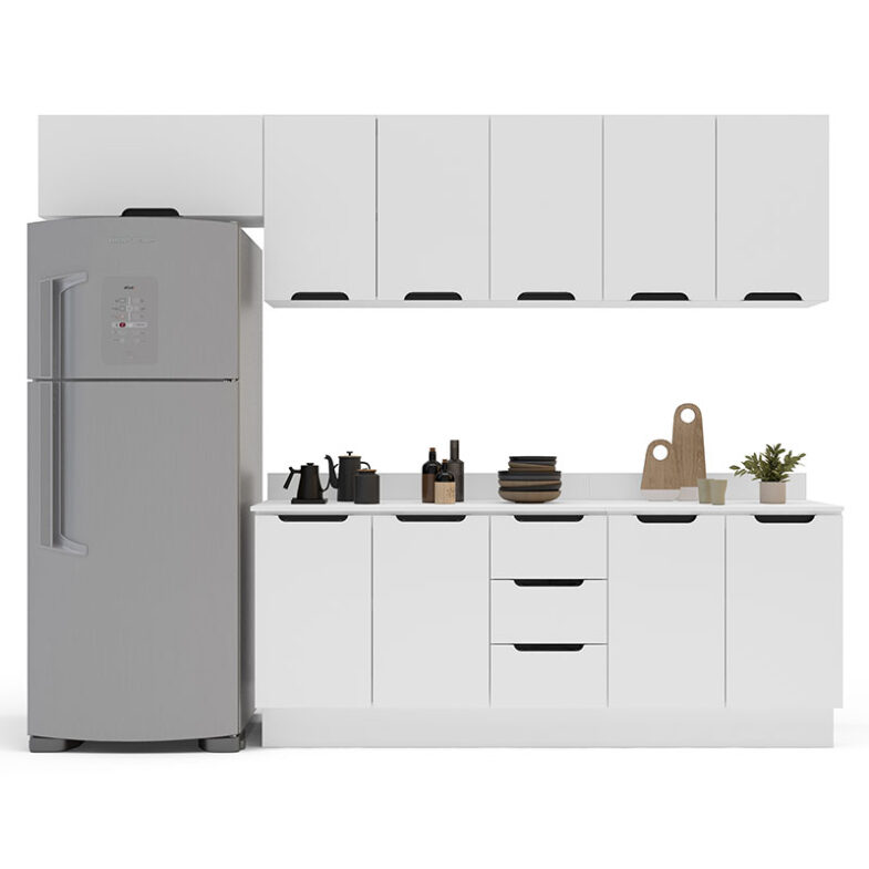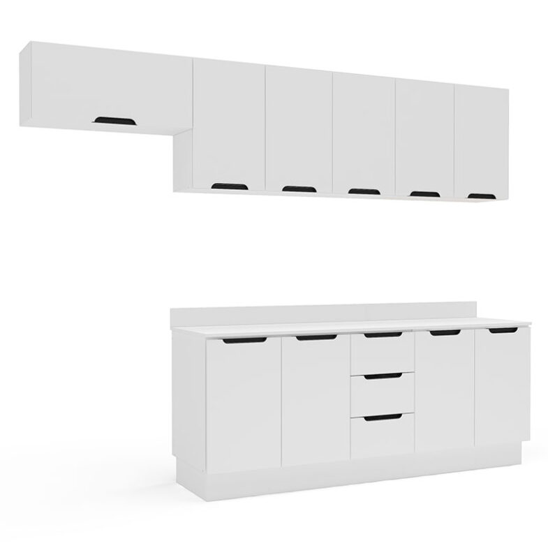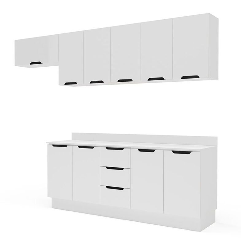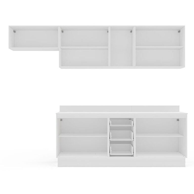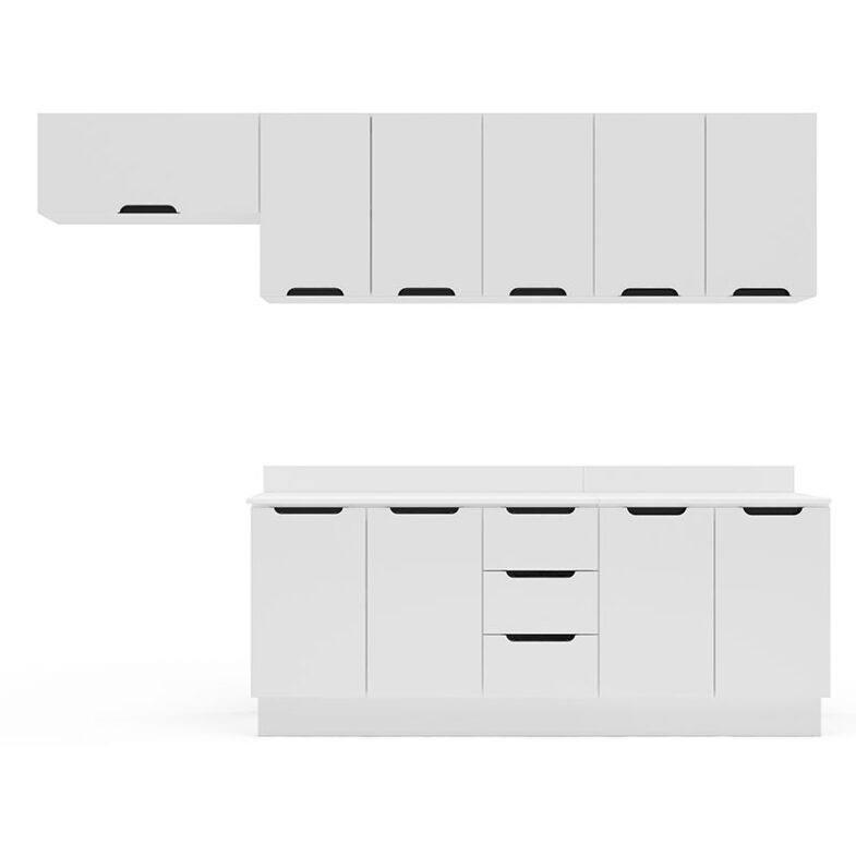 Con 10 puertas y 3 cajones, la Cocina Modular Meena Delta 10P 3C Blanco ofrece espacios múltiples para guardar todo lo que desees.