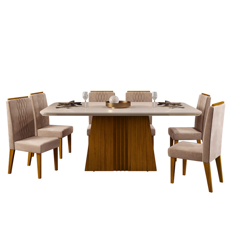 El Comedor Celina Italia 6S está diseñado para quienes buscan sofisticación y presencia en su espacio. Su cubierta en tono claro aporta luminosidad, mientras que su base en acabado madera genera un contraste cálido y moderno que eleva cualquier ambiente.
