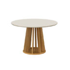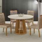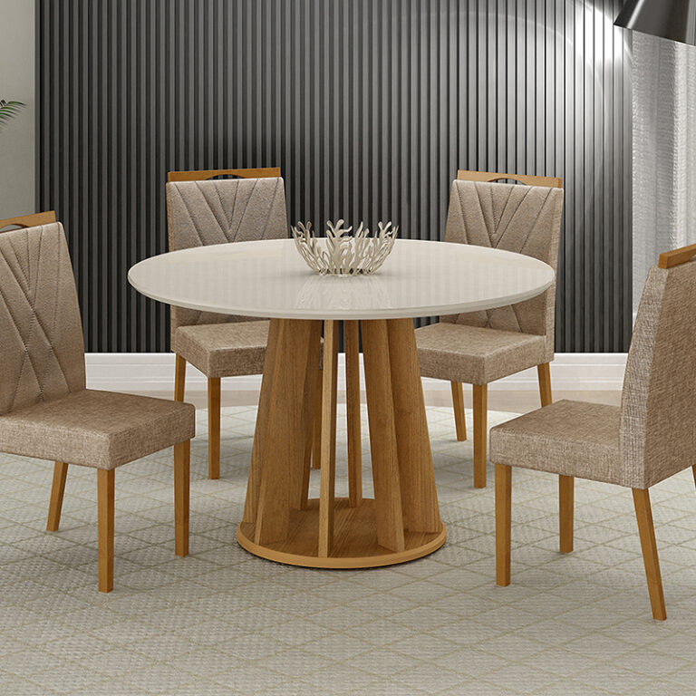 La mesa redonda de 120 cm de ancho, con una altura de 78 cm, está fabricada en Mdf y vidrio, ofreciendo un diseño sofisticado y funcional para tu espacio. El modelo Lara de VEKKA es ideal para espacios pequeños, ya que no es expandible y se adapta perfectamente a cualquier ambiente.