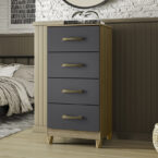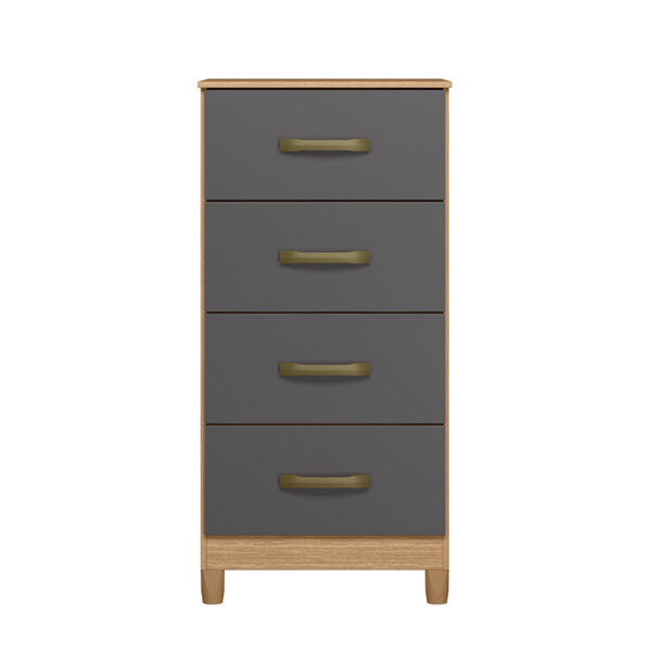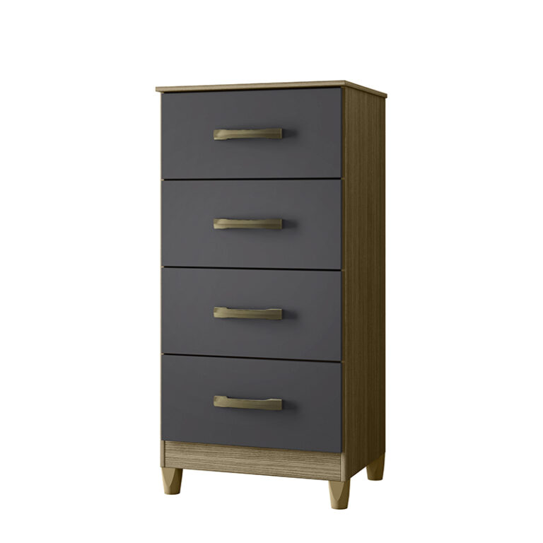 Cómoda fabricada en aglomerado MDP con terminación en pintura UV. Posee 4 cajones, con manillas de pvc. Incluye 4 patas que le dan altura y ademĆ”s facilitan la limpieza del piso. Ideal para organizar poleras o ropa interior. Puedes combinarla con cualquier closet de nuestra lĆnea Mobi.