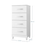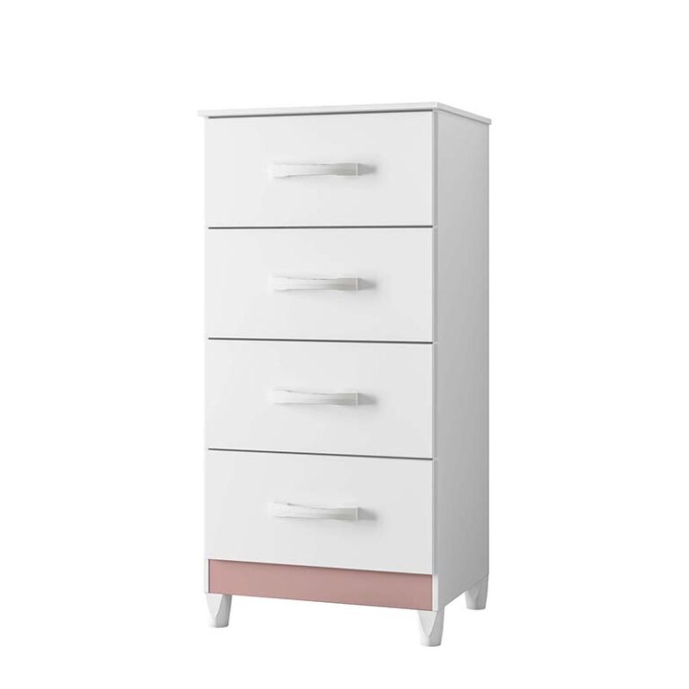 Cómoda fabricada en aglomerado MDP con terminación en pintura UV. Posee 4 cajones, con manillas de pvc. Incluye 4 patas que le dan altura y además facilitan la limpieza del piso. Ideal para organizar poleras o ropa interior. Puedes combinarla con cualquier closet de nuestra línea Mobi.