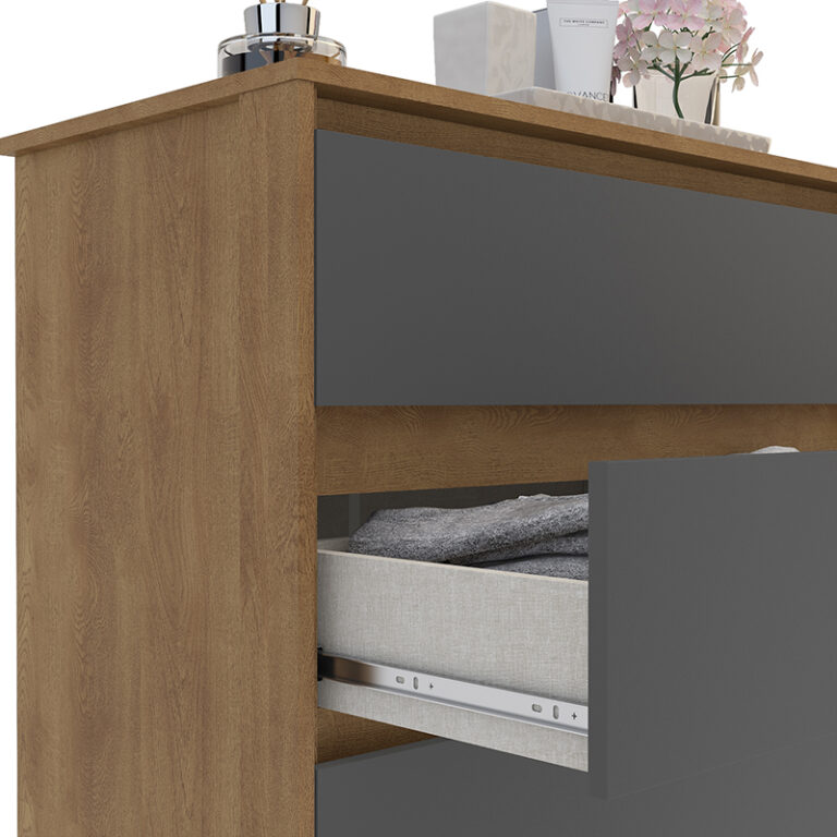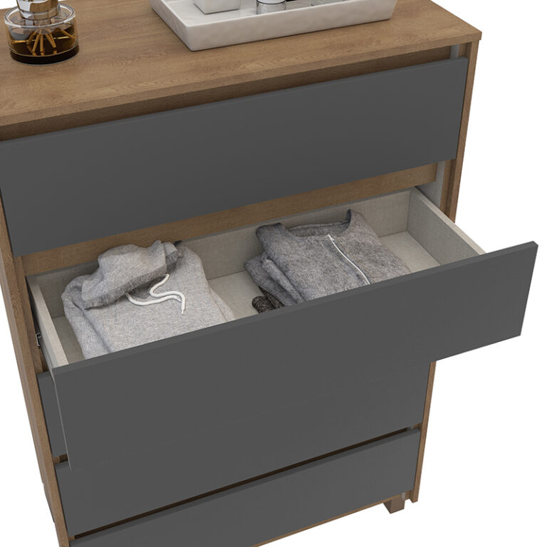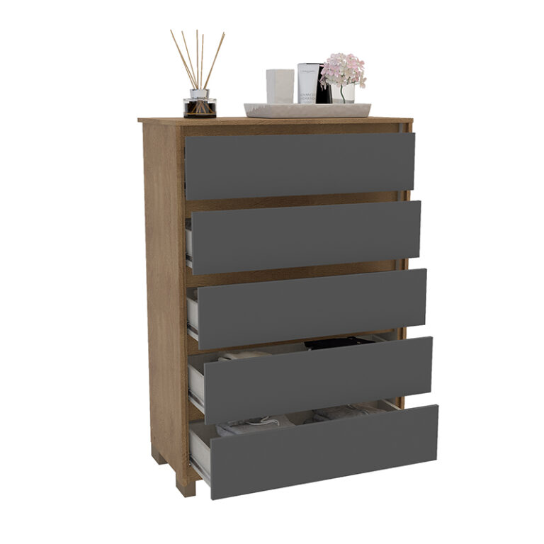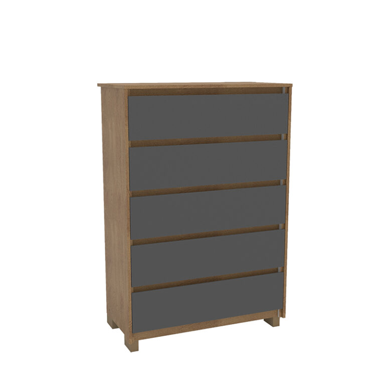 Cómoda 5 cajones coimbra color gris/café , estructura en MDP y cubierta en pinutura UV. Organiza tu espacio dando un estilo único.