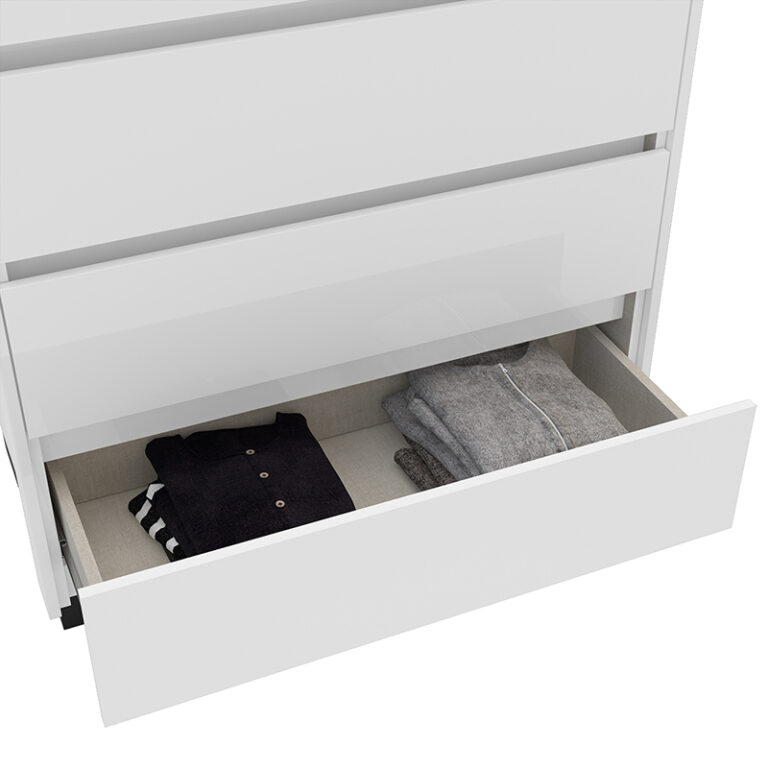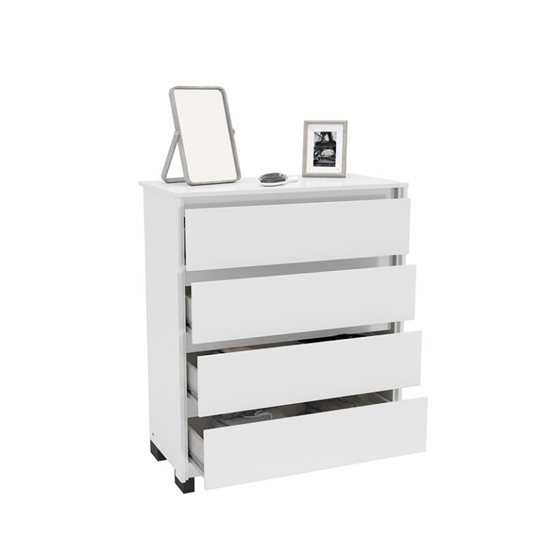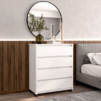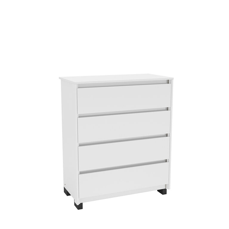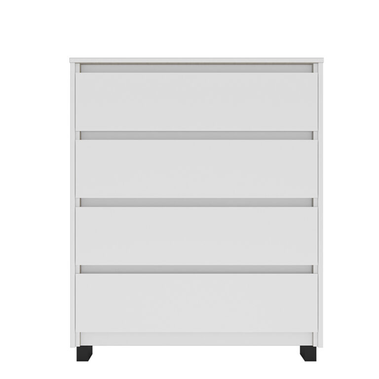 Cómoda Coimbra blanca 4 cajones, estructura en MDP y cubierta en Pintura UV, estiliza tu espacio con este estilo minimalista.