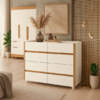 La Cómoda Infinite Beige 6 Cajones combina elegancia y funcionalidad para transformar tu espacio en un ambiente más ordenado y armónico.