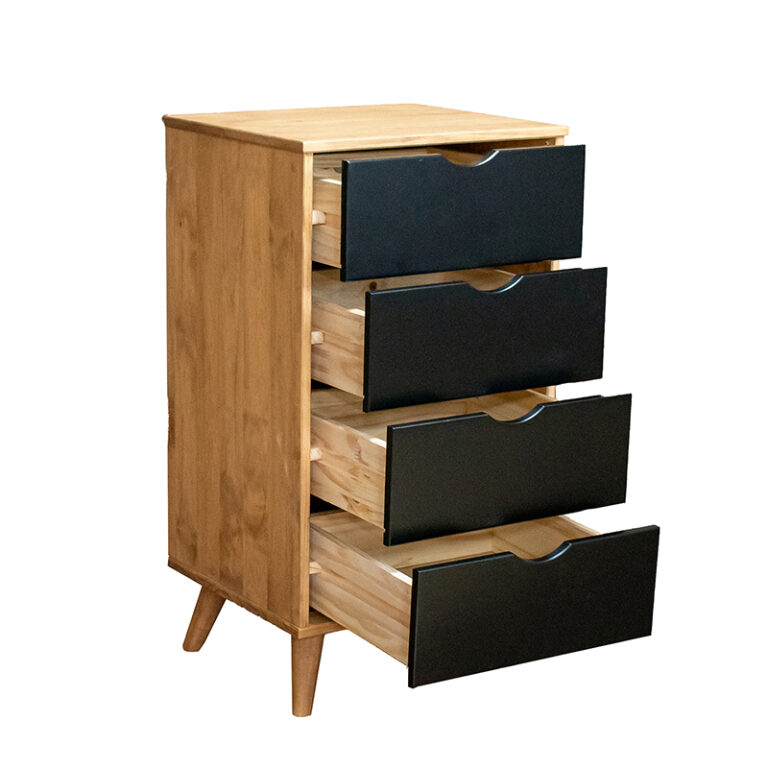 La cómoda Lia de la marca VEKKA es un mueble de alta calidad fabricado en madera maciza de pino, lo que garantiza durabilidad y resistencia. Con 4 cajones espaciosos, ofrece un amplio espacio de almacenamiento para organizar tus pertenencias de manera ordenada y práctica. Su diseño elegante y moderno se adapta a cualquier estilo de decoración, convirtiéndola en una pieza versátil para tu hogar. Además, incluye un manual de ensamblado para facilitar su armado de forma sencilla y rápida.