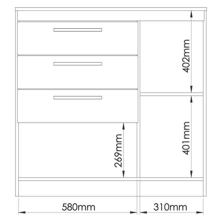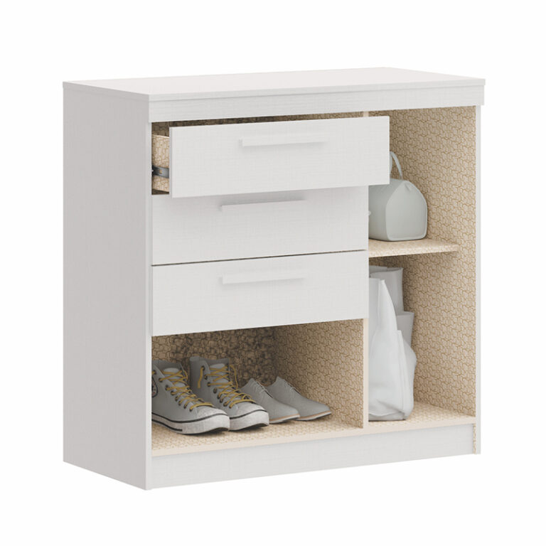 Cómoda Lille con 2 puertas, 6 compartimientos y 3 cajones. Estructura en MDP, cubierta en Pintura UV y manillas de mandera. Pensada para lidiar con la organización de tu espacio con un diseƱo increĆble.