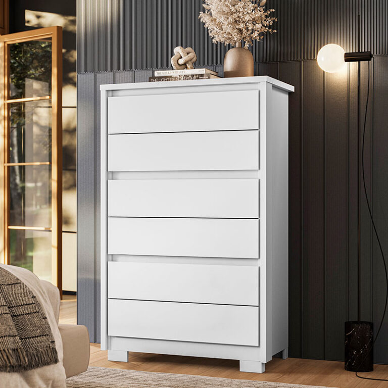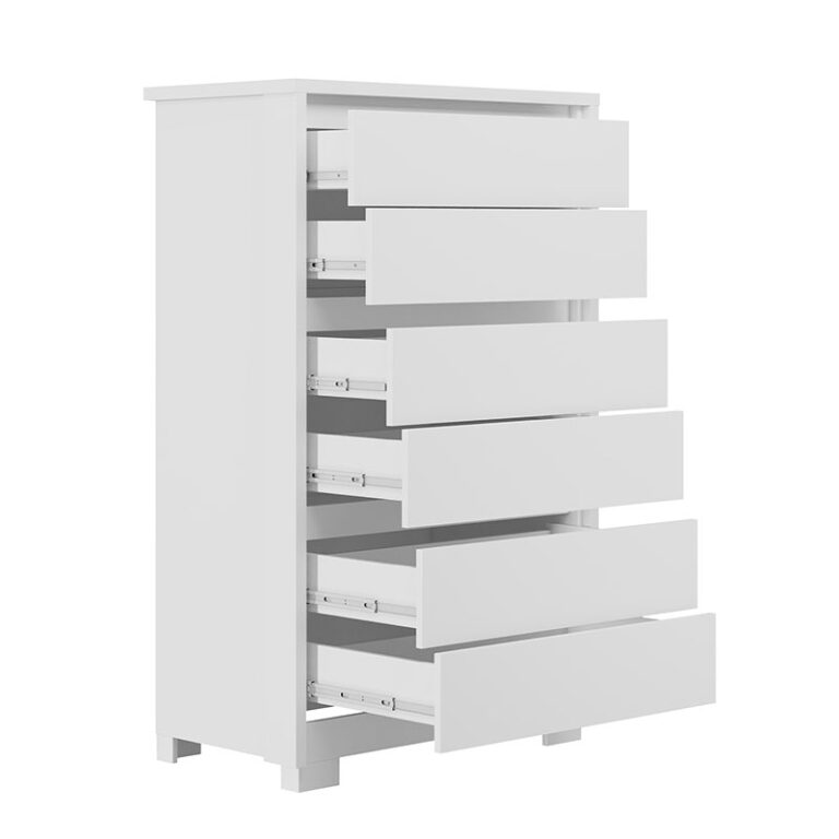 La Cómoda Unno Blanca 6 Cajones es el complemento perfecto para mantener tu ropa y accesorios siempre organizados.