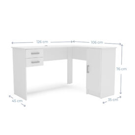 Con una altura de 75.5 cm y una capacidad de peso de hasta 100 kg, este escritorio rinconero es ideal para realizar tus tareas diarias con comodidad y sin preocupaciones. Su estilo moderno le dará un toque elegante y sofisticado a tu ambiente, creando un espacio de trabajo funcional y atractivo.