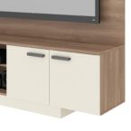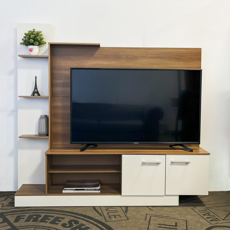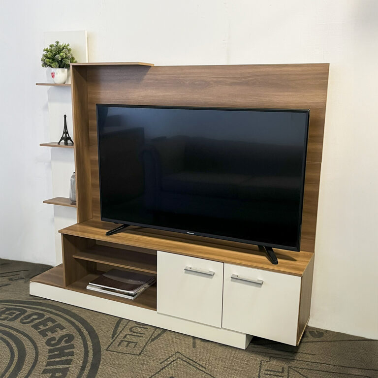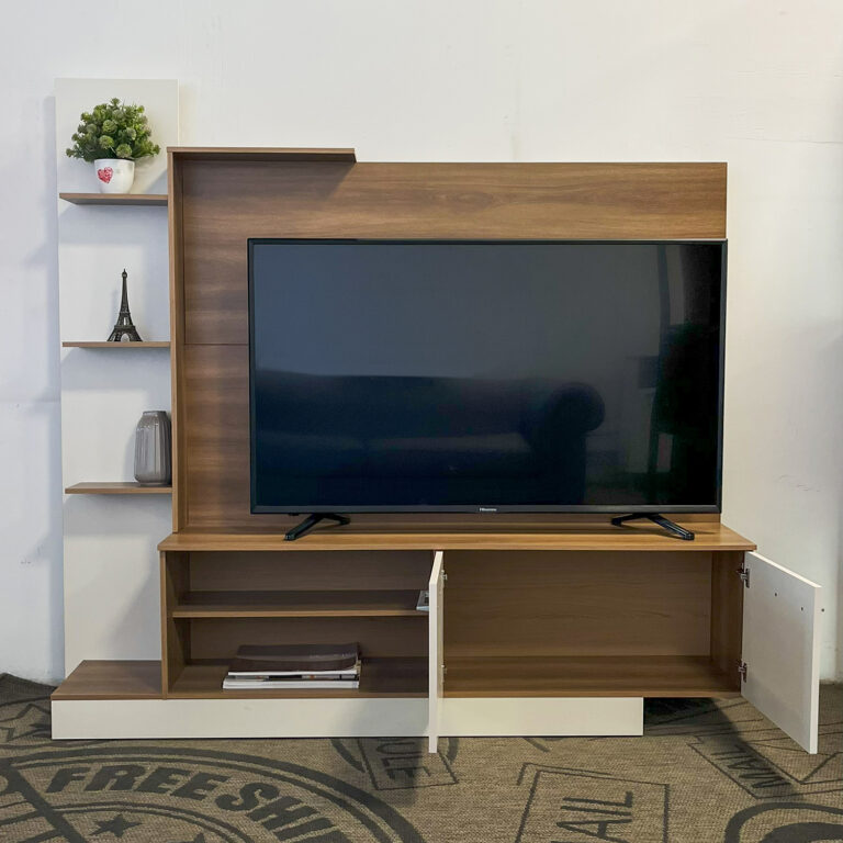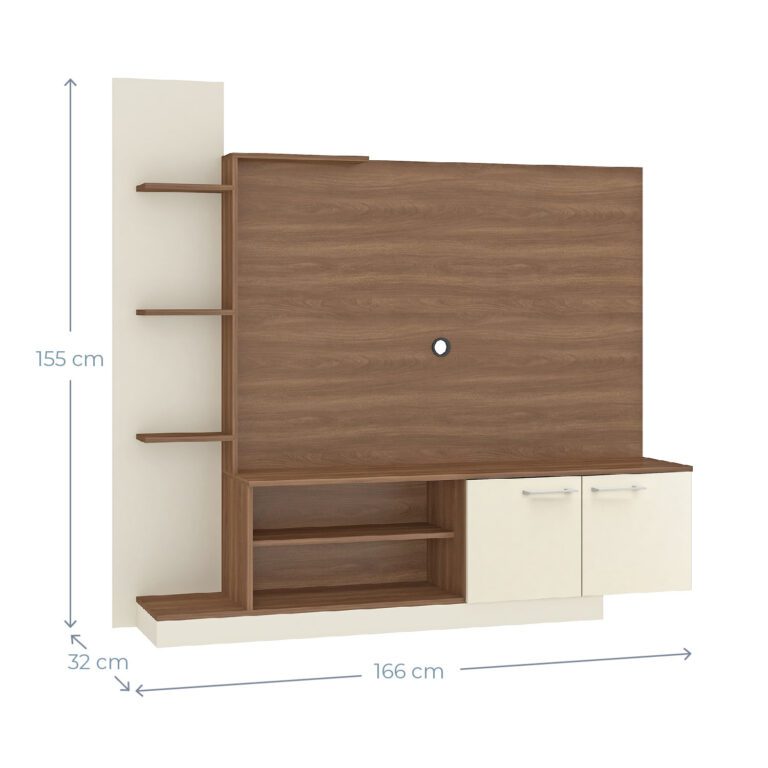 El Home TV Reina 55” está diseñado para transformar tu living en un espacio ordenado, elegante y funcional. Su panel central permite instalar el televisor de forma segura, mientras que su diseño en tonos madera y claro aporta calidez y estilo contemporáneo.