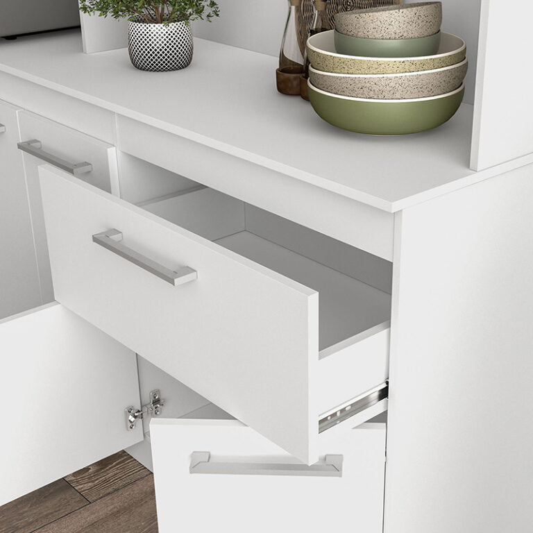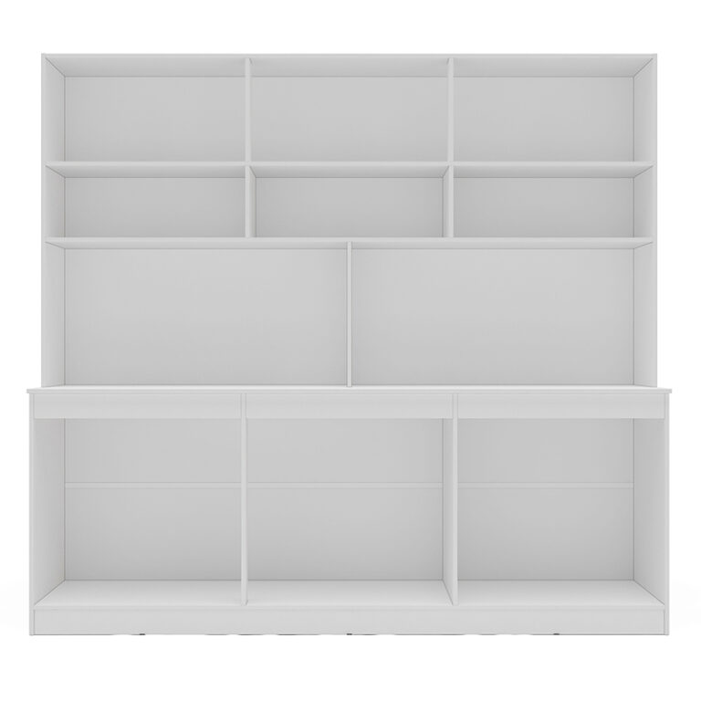 Cocina fabricada en MDP en color blanco con un diseño que se adapta a los más variados ambientes de cocina gracias a su diseño contemporáneo. Posee 12 puertas y 1 cajón con tiradores de plástico y espacio en la encimera para guardar horno y microondas. Amplio espacio interno para guardar utensilios de forma organizada para la practicidad del día a día.