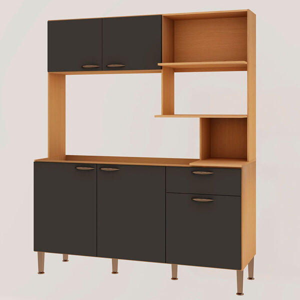 Con una estructura práctica y bien distribuida, este kit permite organizar utensilios, vajilla, alimentos y pequeños electrodomésticos en un solo módulo.