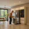 Con un estilo limpio y contemporáneo, este set maximiza el uso del espacio y se adapta tanto a cocinas grandes como compactas. Sus puertas y cajones cuentan con tiradores discretos en tono negro que aportan un acento sofisticado.