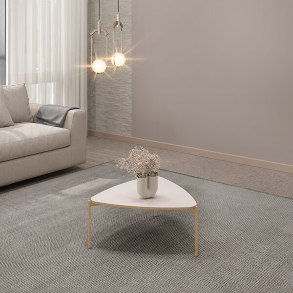 La Mesa de Centro ISA Beige es una pieza decorativa y funcional que aporta suavidad visual y modernidad al living. Su diseño triangular con bordes redondeados crea una estética contemporánea y elegante, perfecta para ambientes minimalistas, nórdicos o modernos.