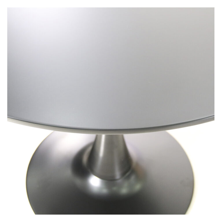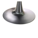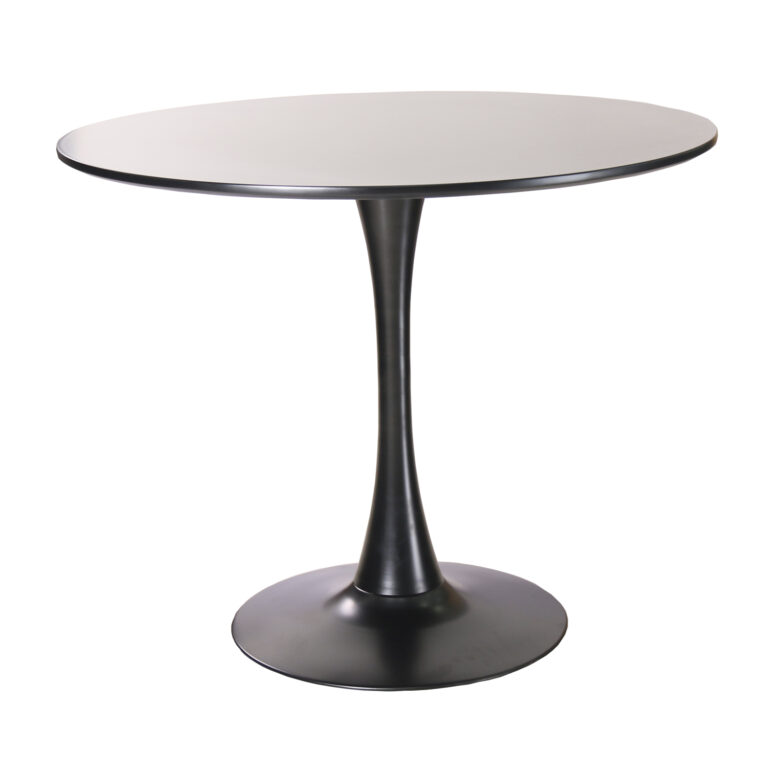 Mesa de comedor circular de estructura metálica y cubierta de MDF en color negro. Posee capacidad para 4 personas y es un clásico del diseño escandinavo, destacándose por su pedestal curvilíneo que otorga fluidez, ideal para quienes buscan diseñar espacios modernos y atrevidos en el hogar, a través de formas orgánicas y funcionales.