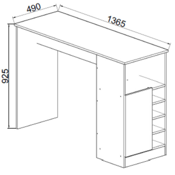 Con dimensiones aproximadas de 136,5 cm de largo, 49 cm de profundidad y 92,5 cm de alto, ofrece una superficie cómoda para cocinar, apoyar electrodomésticos o incluso utilizar como mesa auxiliar.