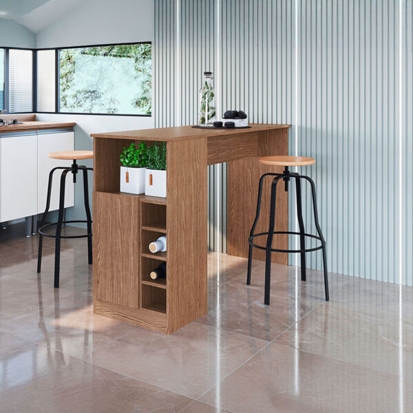 La Mesa Isla Europa 1 Puerta incorpora un módulo lateral con puerta y repisas internas, ideal para almacenar utensilios, loza, alimentos o pequeños electrodomésticos. Además, cuenta con compartimentos abiertos que permiten tener objetos de uso frecuente siempre a mano.