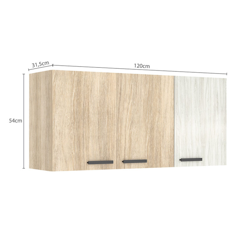 El Mueble Aéreo Mia 120 Cm Vekka es la opción perfecta para aquellos que buscan funcionalidad y estilo en su cocina. Fabricado con materiales de alta calidad como el MDP, este mueble garantiza durabilidad y resistencia. Con su diseño moderno y elegante, se adapta a cualquier estilo de decoración. Cuenta con 3 puertas que ofrecen amplio espacio de almacenamiento para tus utensilios y vajilla. Los tiradores de PVC le dan un toque sofisticado al mueble.