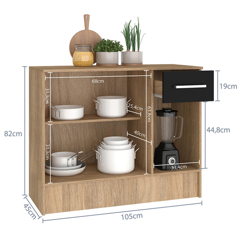El Mueble Base Madri Grey Vekka es la opción perfecta para tu cocina. Con una profundidad de 45 cm, alto de 82 cm y ancho de 105 cm, ofrece espacio y funcionalidad. Con 3 puertas, 1 cajón y tiradores de plástico, este mueble es práctico y duradero. Además, incluye estantes para organizar tus utensilios.