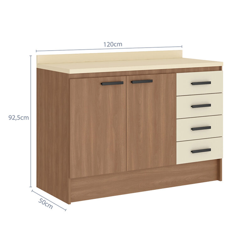 Mueble base con estructura en MDP y cubierta especial (BP 35mm) para el uso diario e intenso de tu concina. Aparte de esto, brinda un estilo único a tu hogar.