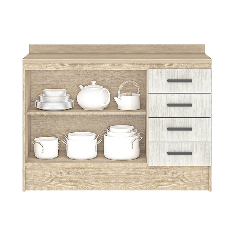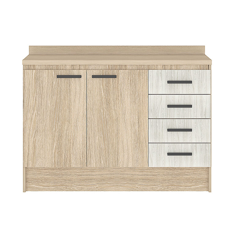 El Mueble Base Mia de 120 cm de la marca Vekka es la opción perfecta para tu cocina. Con materiales de alta calidad como MDP, este mueble ofrece 2 puertas y 4 cajones para un almacenamiento óptimo. Además, incluye una mesada para mayor comodidad al cocinar.