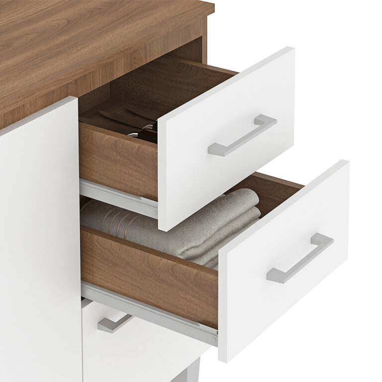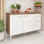 El mueble base Opie de estructura aglomerado MDP con terminación pintura Uv, posee 3 puertas y 2 cajones con capacidad para almacenar menaje, baterías o accesorios de cocina. Es el mueble perfecto para completar la decoración y organización de tu cocina, también puedes combinar este modelo el mueble aéreo Opie.