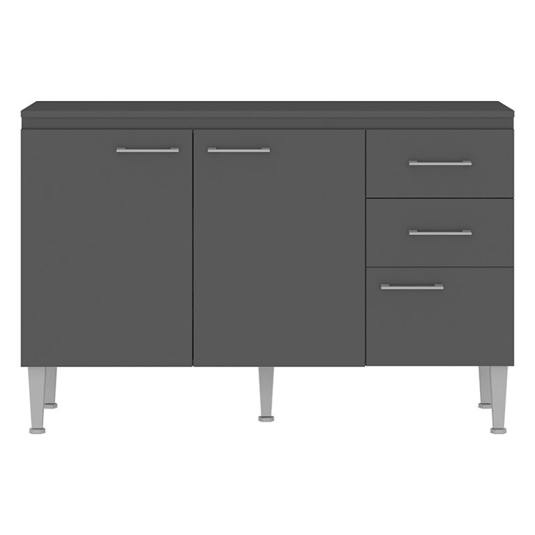El Mueble Auxiliar Base Balcón Cocina Opie 120 Vekka es la solución perfecta para organizar tu cocina de manera moderna y funcional. Con tres puertas y dos cajones, podrás guardar tus utensilios de cocina de forma ordenada y accesible.