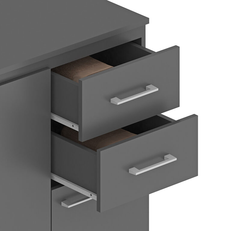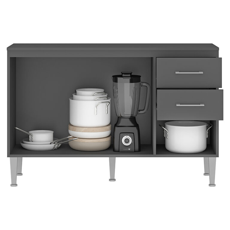 Fabricado en MDP de alta calidad, este mueble cuenta con tiradores de PVC y correderas de metal para garantizar su durabilidad y resistencia. Además, incluye una mesada para facilitar tus tareas culinarias diarias.