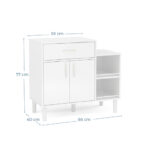 Cuenta con un cajón superior ideal para cubiertos o accesorios pequeños, dos puertas con amplio compartimiento interior y dos repisas laterales abiertas, perfectas para elementos de uso frecuente o decoración.