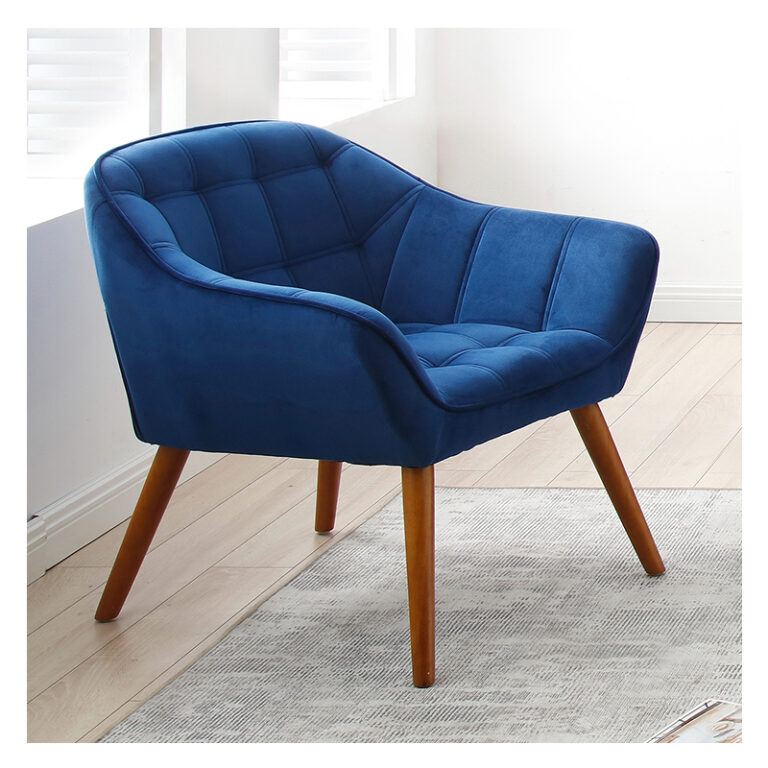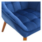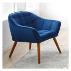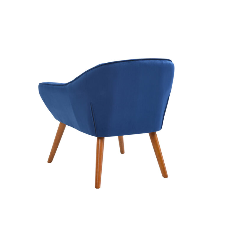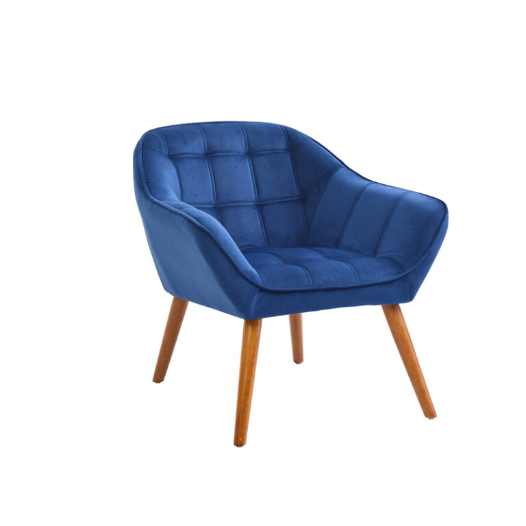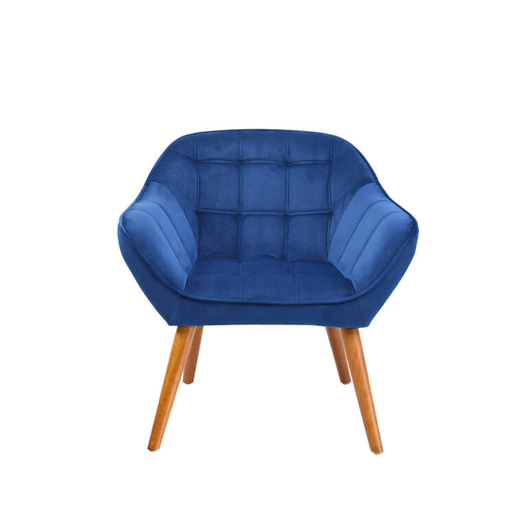 Poltrona compuesta de estructura de madera acolchada de espuma y tapiz velvet azul, posee patas de madera. Su diseño la hace adaptable a diversos estilos, úsala en tu living o sala de estar y crea espacios confortables en tu hogar