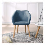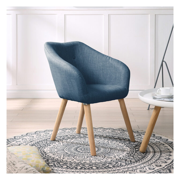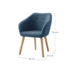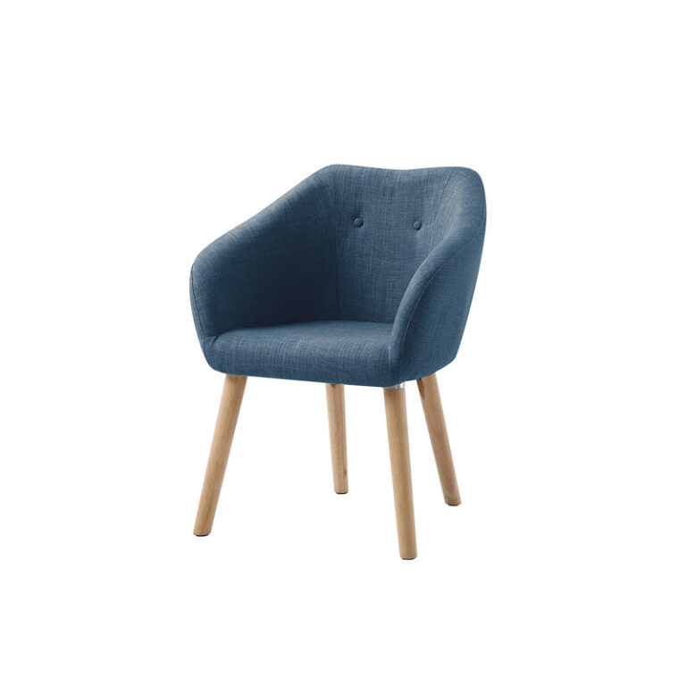 Poltrona con estructura y patas de madera y tapiz de poliéster color azul piedra. Posee relleno de espuma y respaldo curvo con altos brazos, otorgando máximo confort, además de un diseño moderno y color neutro, ideal para diseñar espacios del hogar como áreas de lectura, zonas de conversación o un área de descanso individual.