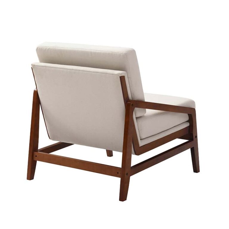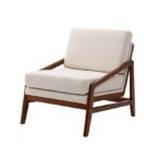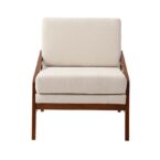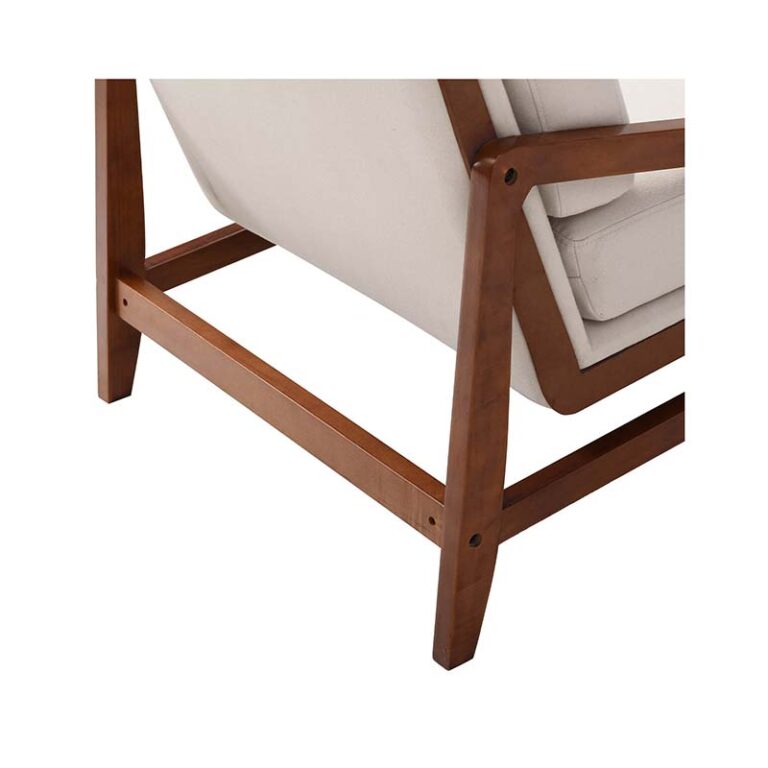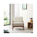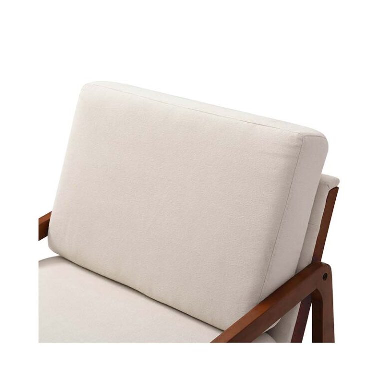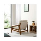 Poltrona de color blanco con tapicería de tejido poliéster, estructura en madera de caucho y relleno de espuma. De diseño escandinavo y máxima comodidad, es ideal para quienes buscan dar un estilo confortable, prolijo y luminoso a los espacios del hogar gracias a la calidez que le aporta la madera y el color neutro de su tapiz.