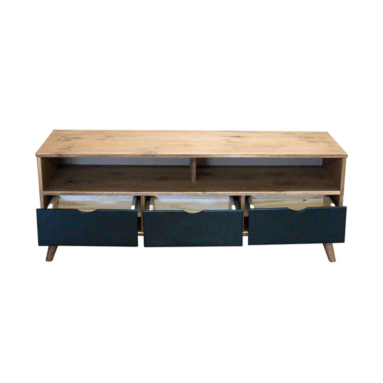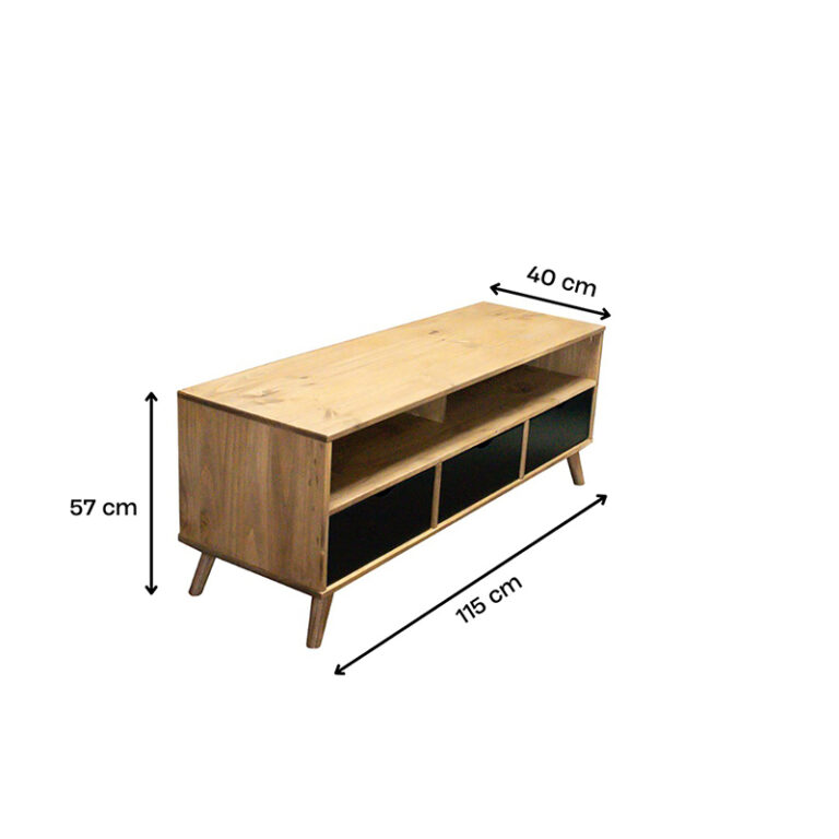 El Rack Tv Berlin 03 Cajones Vekka es la opción perfecta para darle un toque moderno a tu sala de estar. Con una estructura de pino macizo, este mueble es resistente y duradero. Con un ancho de 115 cm, ofrece espacio suficiente para colocar tu televisor de hasta 50 pulgadas.