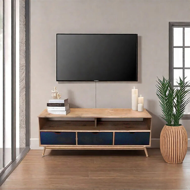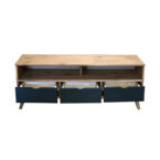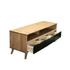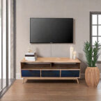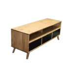 El diseño del Rack Tv Berlin 03 Cajones Vekka incluye un estante para organizar tus dispositivos electrónicos y accesorios de entretenimiento. A pesar de su tamaño, su profundidad de 40 cm permite que se ajuste perfectamente en cualquier espacio. Además, su altura de 57 cm lo hace ideal para mantener una buena visibilidad de la pantalla.