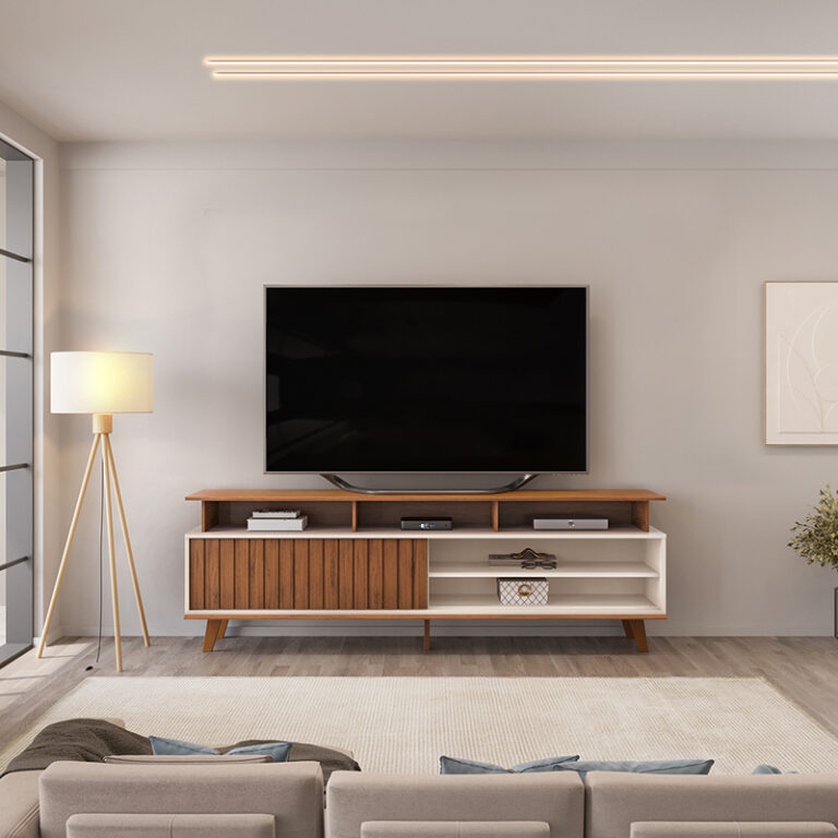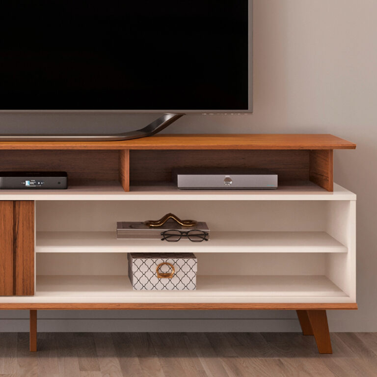 El modelo Flow cuenta con una puerta, un estante y espacio para cajones, ofreciendo opciones de almacenamiento para tus dispositivos electrónicos y accesorios. Aunque requiere ensamblado, su diseño práctico y funcional facilita el proceso de armado. Además, su formato de rack lo hace perfecto para organizar tu espacio de entretenimiento de manera elegante y ordenada.