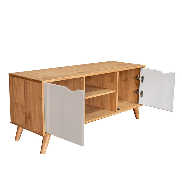 El Rack Tv Grecia 02 Puertas Vekka es la opción perfecta para darle un toque moderno a tu sala de estar. Con una altura de 57 cm y un ancho de 115 cm, este mueble es ideal para televisores de hasta 43″. Su estructura de pino macizo garantiza resistencia y durabilidad. Además, cuenta con 2 puertas y 2 estantes para organizar tus dispositivos electrónicos y accesorios de entretenimiento.